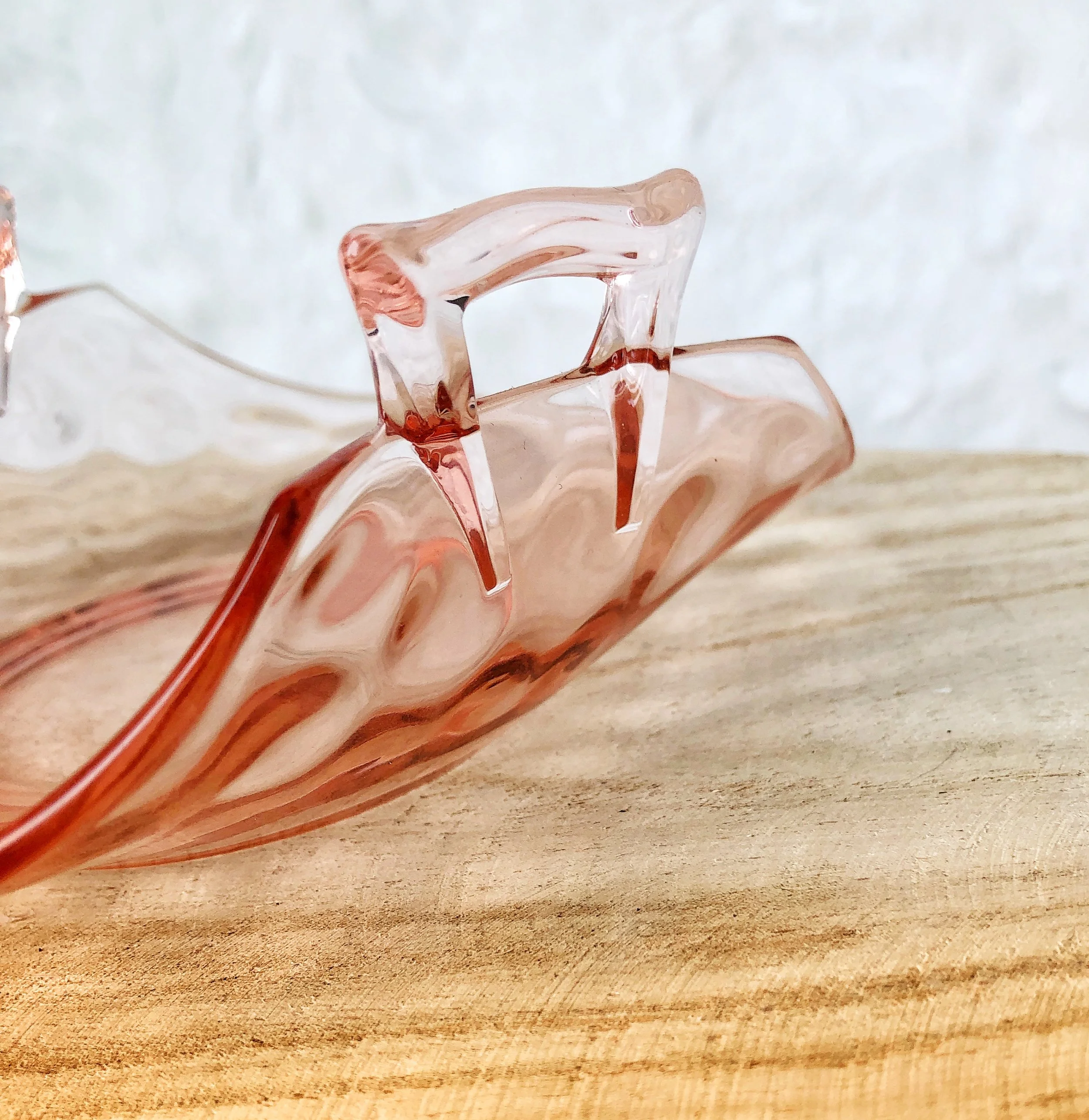 Pink depression glass curved serving dish. A unique serving dish that will be the attention getter when you have company,